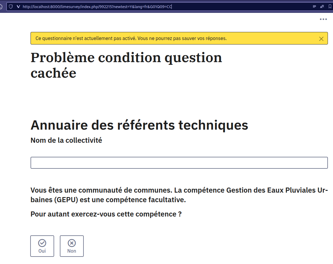 Forum post : https://forums.limesurvey.org/forum/french-forum/157068-condition-avec-question-cach%C3%A9e And sample survey (both are All in one) limesurvey_survey_453798.lss (53,957 bytes)