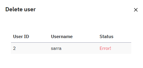 | Description | I opened the page "User management" I tried to delete an user in the user list. Info: | ||||