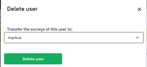 �This fixed my issue, thank you @C_schmitz. I was given the option of transferring the existing surveys for the user to another user. Thank you! |