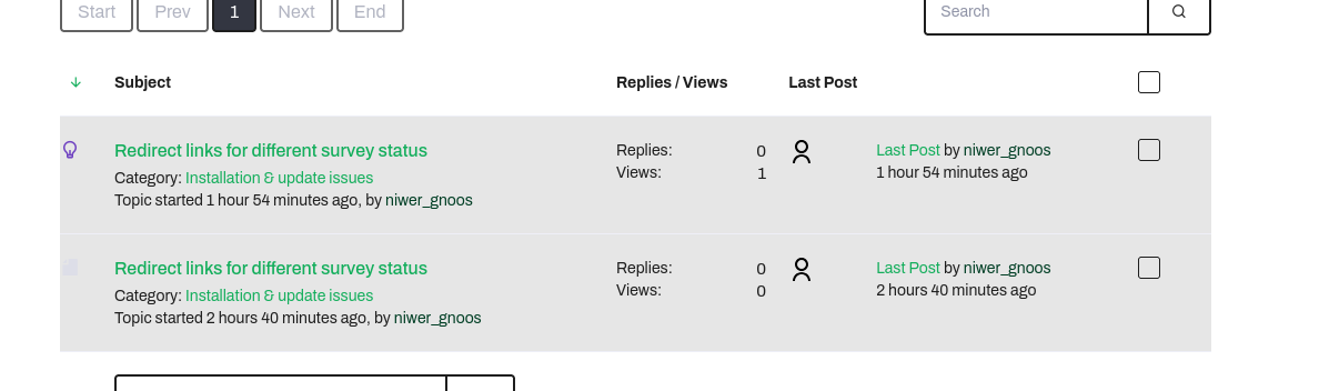 | 20109 | Bug reports | LimeSurvey Website | public | 2025-05-19 08:41 | 2025-05-19 16:33 |