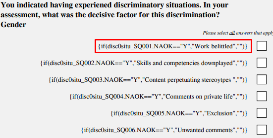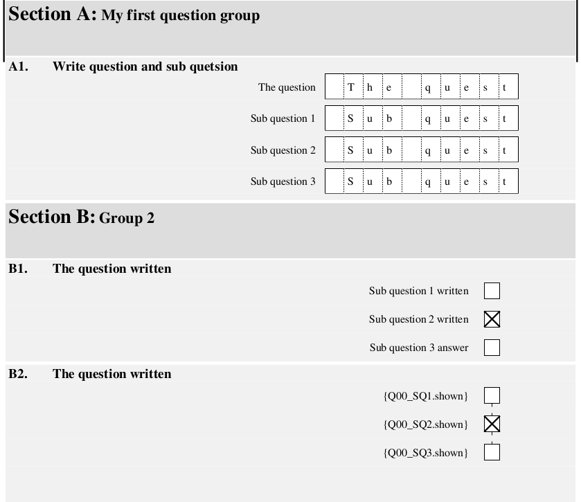 ##Expected result## PDF show {Q00_QUES.shown} or "1st answer" for B1 question ##Actual result## PDF shown A new questoion, just answered not submitted for B1 question (usage of current). ##Potential solution## To have {Q00_QUES.shown} : just do not replace when export via admin Did I report this issue separatly ? |