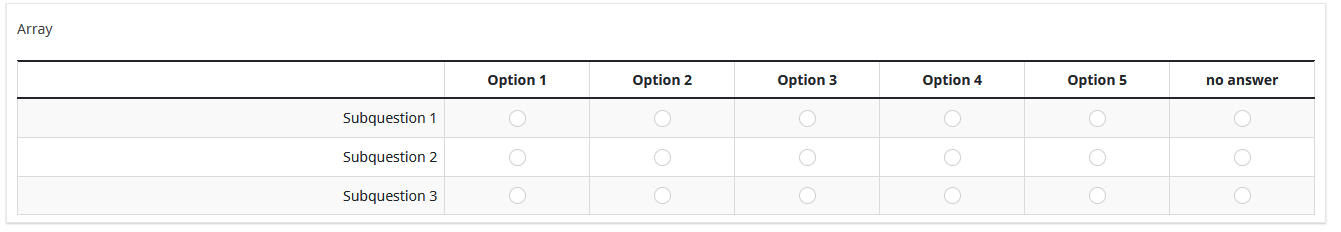 In LimeSurvey version 6.5.15, when rendering survey questions that offer multiple response options—such as multiple choice or matrix-style questions—the "No answer" option is automatically pre-selected by default for non-mandatory questions. This behaviour limits respondent agency, as it implicitly biases the response without any user interaction.