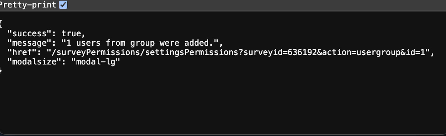 | Description | When adding a user group in the survey permissions in the survey editor, the form submit and the modal to set the permission is not shown in a modal. | ||||