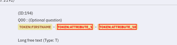 | Steps To Reproduce | Steps to reproduceImport included survey Expected resultSee all clear OK, Actual resultSee error on {TOKEN:ATTRIBUTE_1} but not on {TOKEN:FIRSTNAME} | ||||