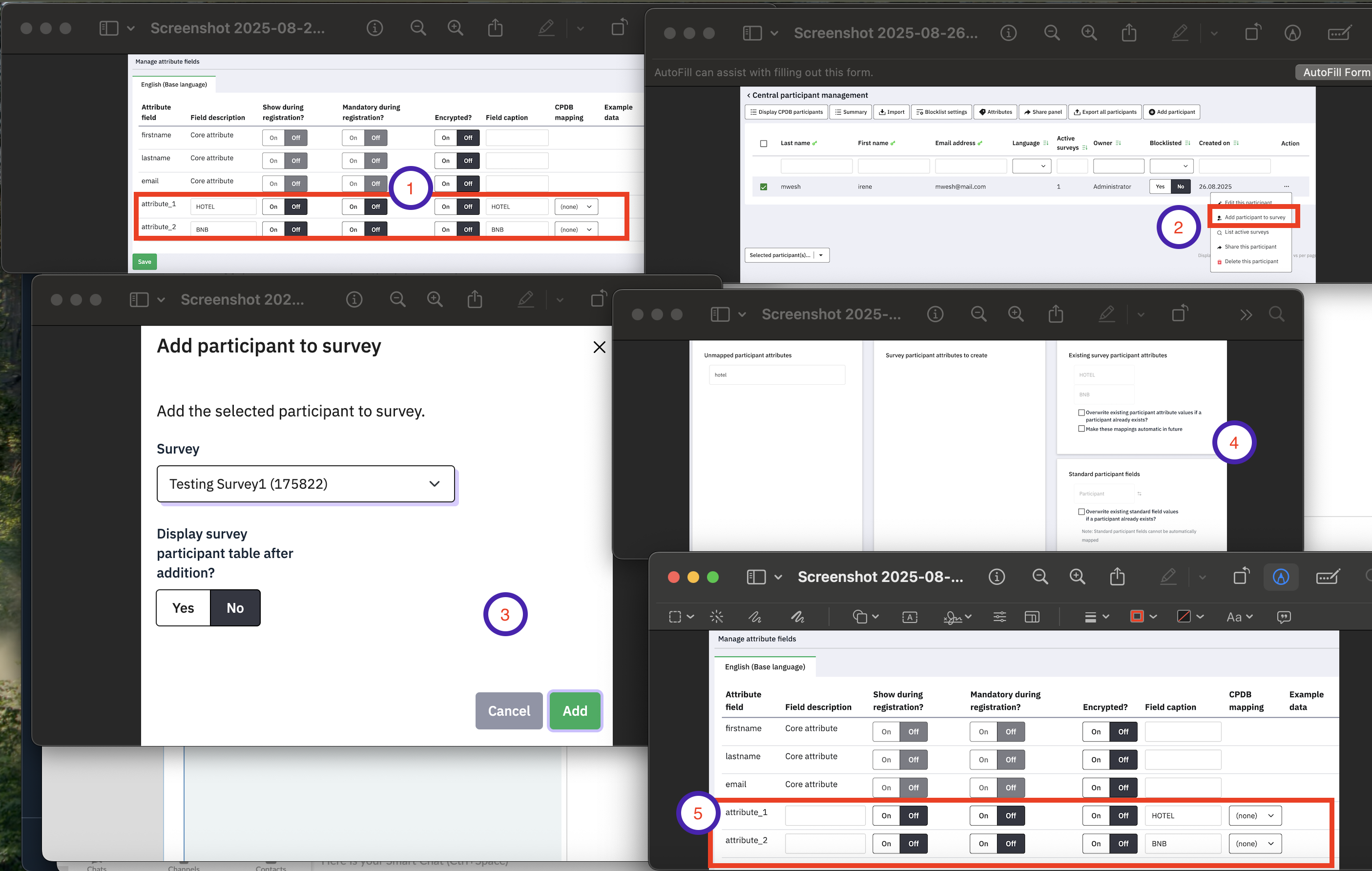 Expected resultSurvey attributes should remain intact when adding participants from CPDB. Attribute names should continue to appear in mapping screens and participant sections. Automatic mapping should continue to function correctly. Actual result
