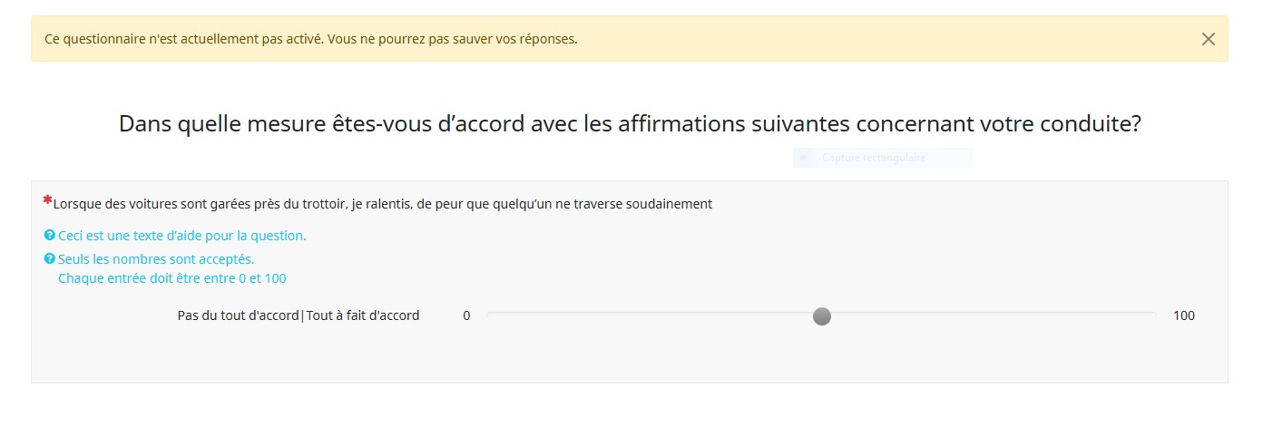 Nous avons pris en compte que vous n’avez pas encore complété le questionnaire, et nous vous rappelons que celui-ci est toujours disponible si vous souhaitez participer.<br />