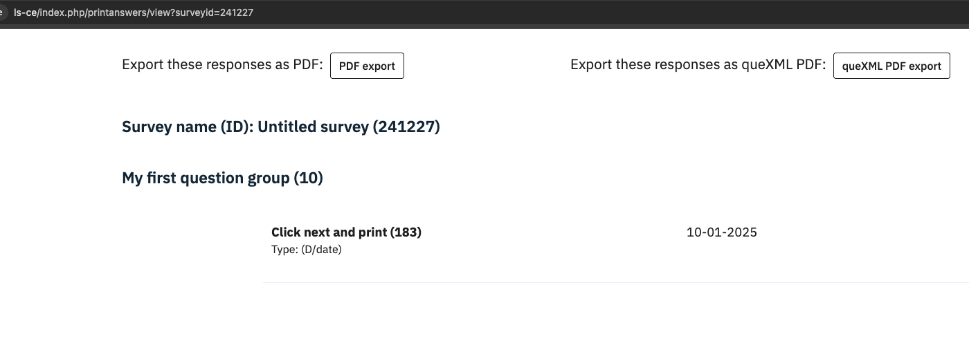 | 2025-09-24 11:30 | DenisChenu | File Added: limesurvey_survey_DatePrint.lss | |