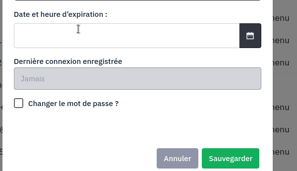 | Description | In user management : you can activate/deactivate, set group or roles but don't update Expiration date