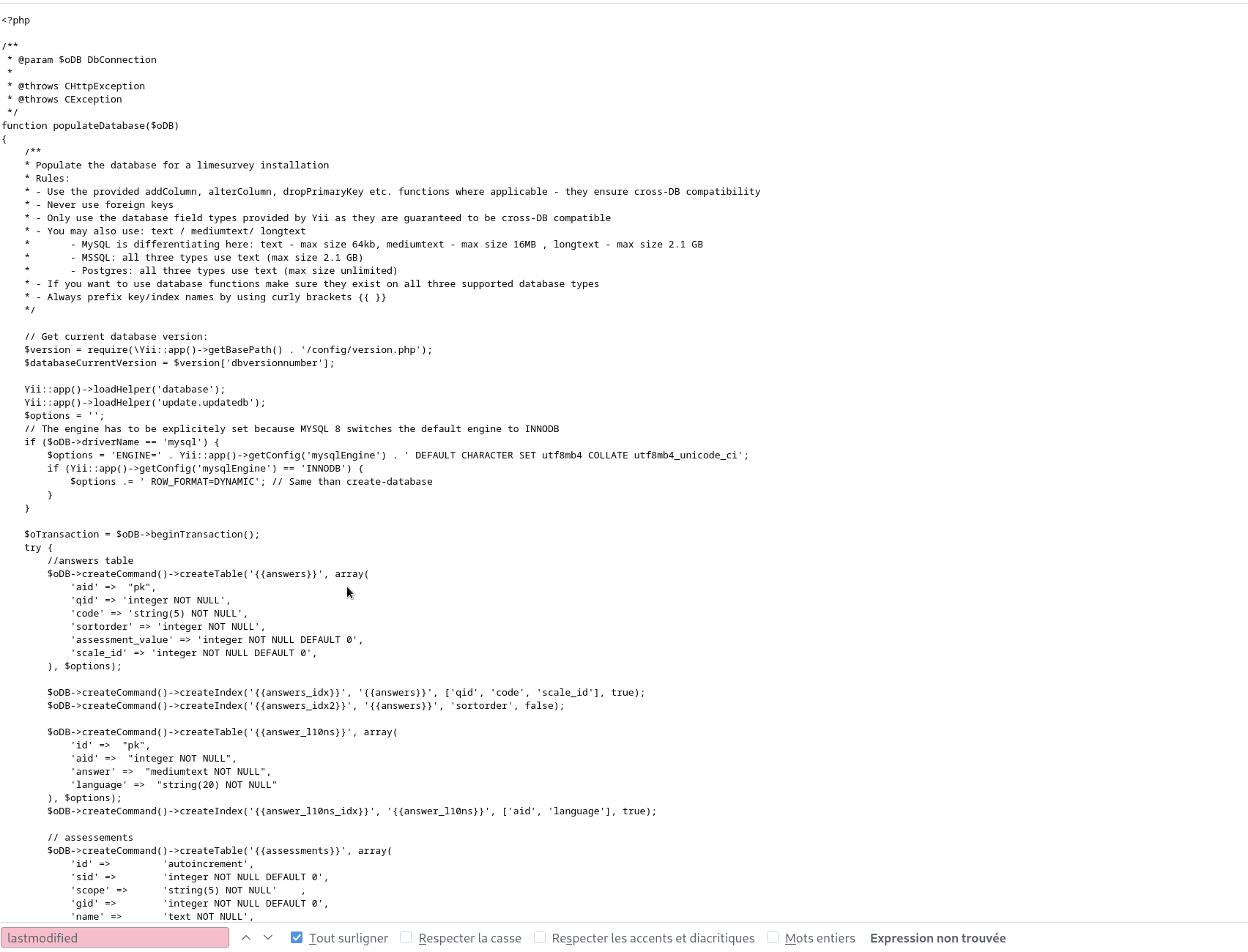 | Steps To Reproduce | Steps to reproduceTry to import any lss file Expected resultNew survey created Actual resulthave 500 : Erreur interne au serveur - Property "Survey.lastmodified" is not defined. | ||||
