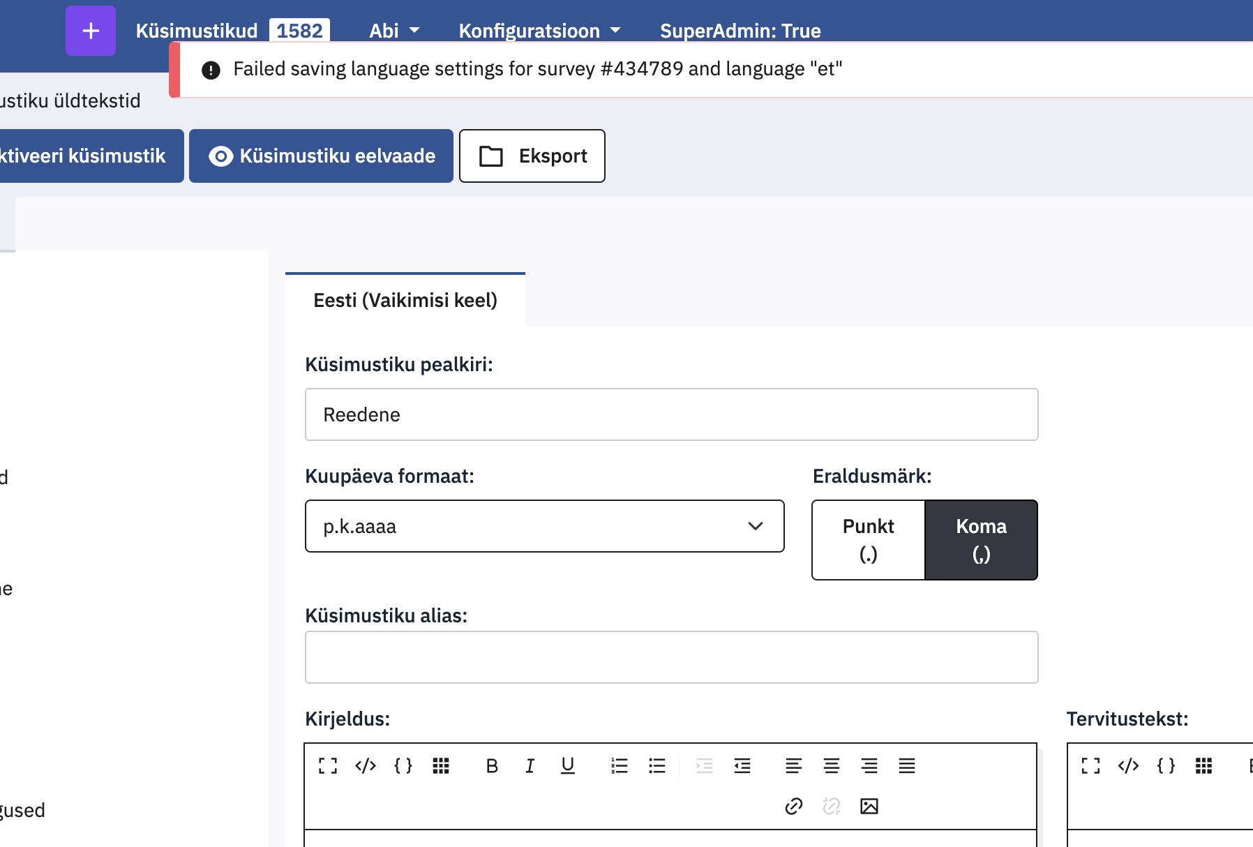 | Description | String in question: https://github.com/LimeSurvey/LimeSurvey/blob/bfc3bc24d902823014f547771d28a97404909a98/application/models/services/SurveyAggregateService/LanguageSettings.php#L136. | ||||