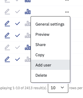 | Steps To Reproduce | Steps to reproduceClick on "Add user" button of a survey on surveyAdministration/listsurveys view. Expected resultAs the dropdown button is attached to each survey record, one assumes that the button leads to survey specific settings (surveyPermissions/index view). Actual resultThe button leads to the general userManagement view, which has nothing to do directly with the survey record it was presented with. | ||||