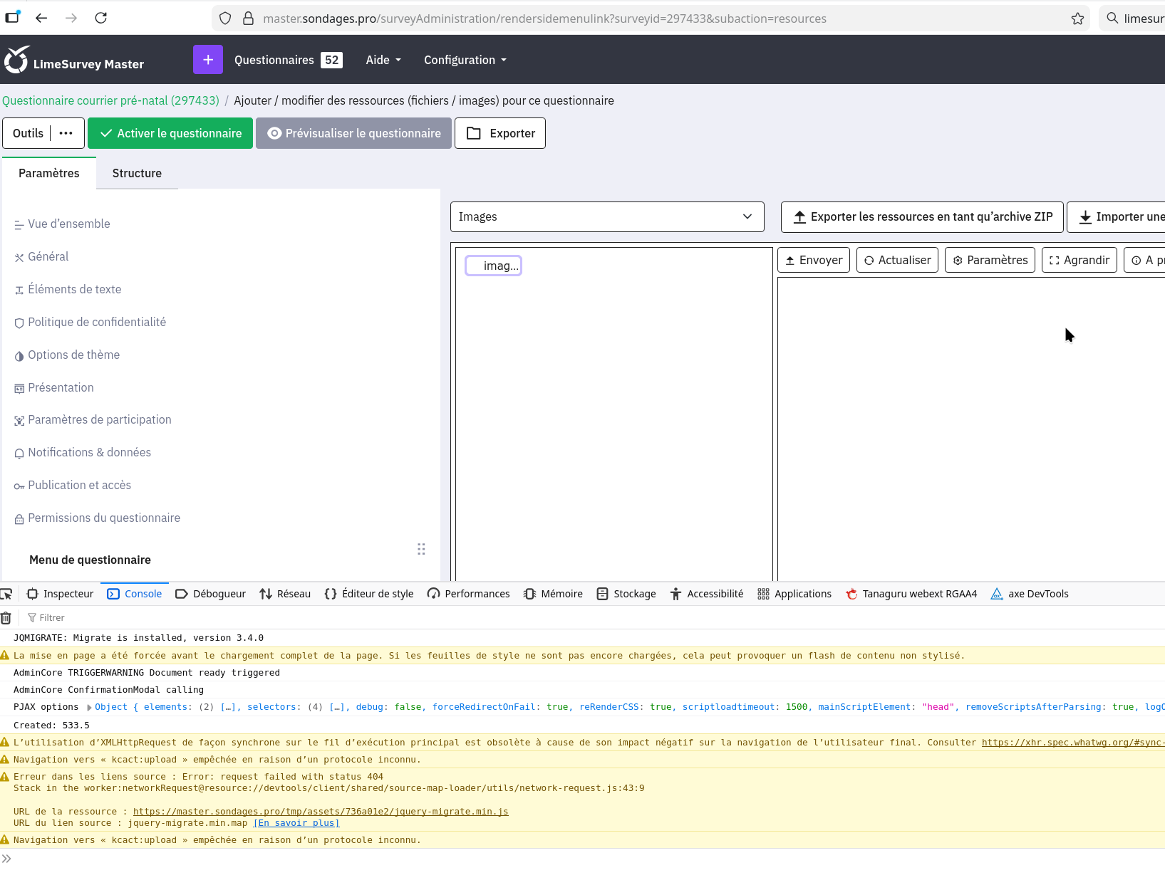 | Steps To Reproduce | Steps to reproduceGo to ressources tab Expected resultSee the upload screen with CSS Actual resultNo CSS | ||||