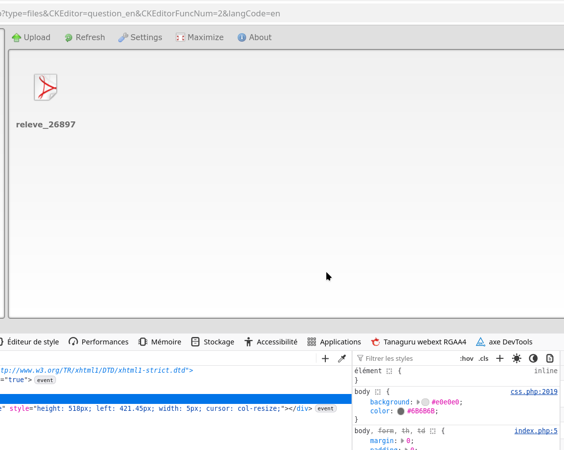 | Steps To Reproduce | Steps to reproduceGo to ressources tab Expected resultSee the upload screen with CSS Actual resultNo CSS | ||||
