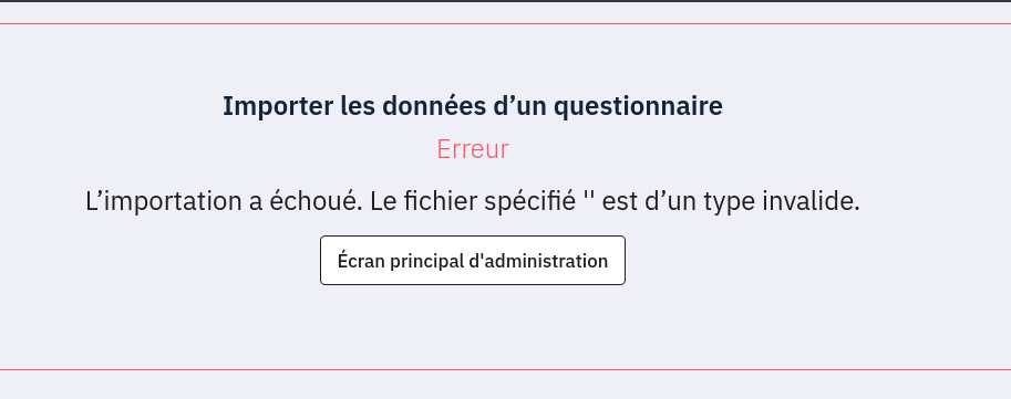 | Steps To Reproduce | Steps to reproduceLogin LimeSurve (tab1) Expected resultSee the import forum again? Actual resultImport result broken | ||||