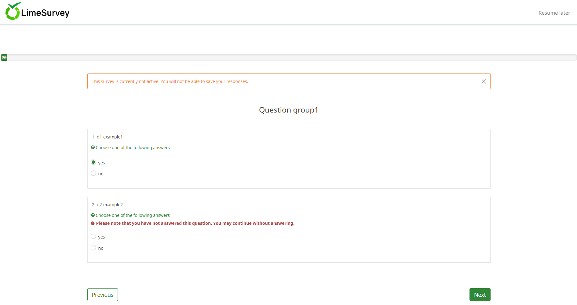 | Description | (1) After clicking "Answer question" in the warning dialogue, it becomes impossible to proceed to the next page, even when the user still intends to skip some of the remaining questions on the current page. | ||||