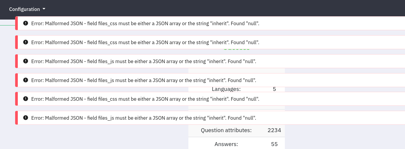 | Summary | 20448: When import survey for 3.X : receive error about null VS inherit | ||||