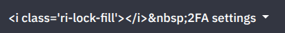 | Description | After the last update, it seems that the link for the 2FA settings is breaking and presenting the "<i class='ri-lock-fill'> 2FA settings" | ||||