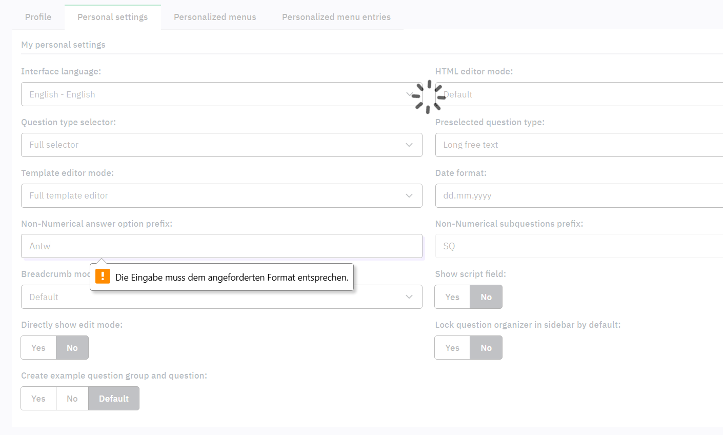 | Additional Information | LimeSurvey 6.16.2 on my universities server where I am not the admin | ||||
