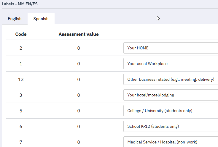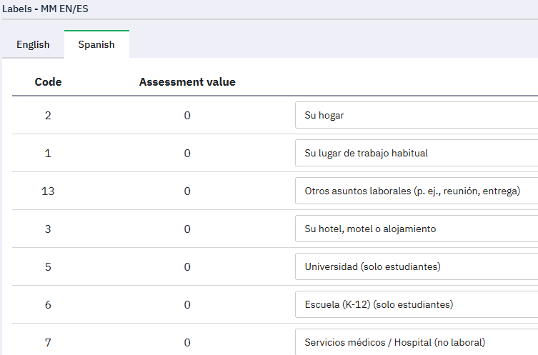 | Description | When copying content from my Microsoft Excel file (attached) with answer code, English translation and Spanish translation, everything works fine when using the quick add feature at question level. I simply copy-paste all the three columns and the answer labels are saved correctly for both languages. When doing the same for a label set using English and Spanish language and the quick add feature to copy-paste the same content, there is an issue when saving the data. If you just copy-paste the content and then preview the Spanish labels before saving, everything looks correct, but once you have clicked save, the Spanish translation shows English labels only, see screenshots. | ||||