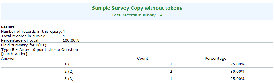 | Description | When clicking the "View the statistics for this survey." link at the end of the attached survey I only get the header as shown at the screenshot but no data is shown. | ||||