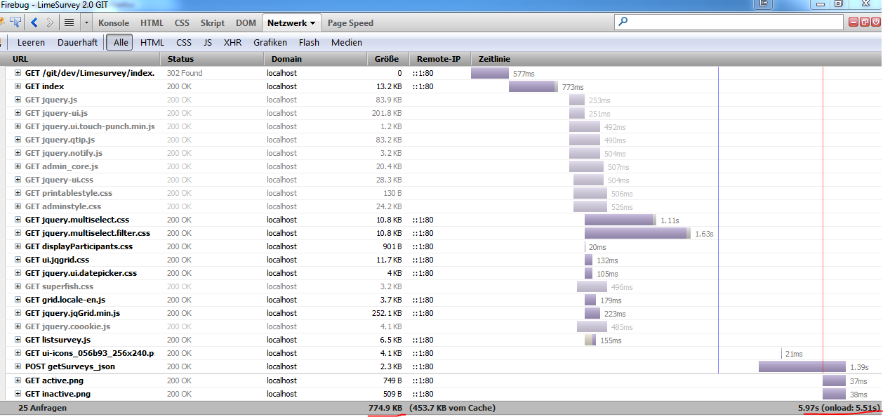 | Description | LimeSurvey 2 is much slower than 1.19. It take about 1.33s to load admin/admin.php for 1.92 while for 2 it takes about 5.17s. For the detail, please see the attachment. | ||||