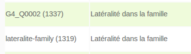 As you can see with the screenshot, there are two question code for the same question "Lateralité dans la famille". laterality-family doesn't exist anymore but it's still in the record. |