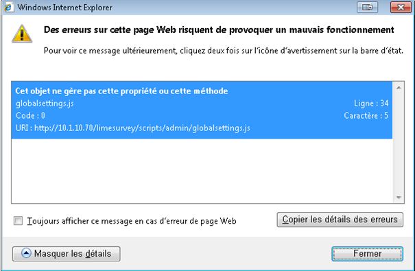 | Summary | 06693: Error whan saving global settings with IE8 only | ||||