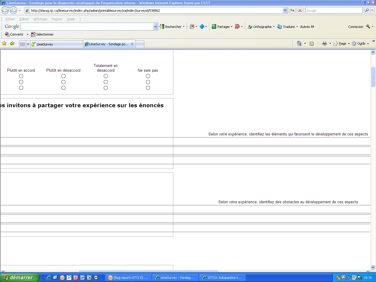 | 2013-04-28 17:01 | c_schmitz | File Added: Official LimeSurvey Survey Site - Sondage pour le diagnostic stratégique de l'organisation interne.pdf | |