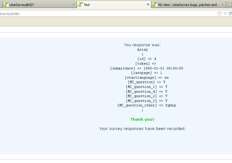 | 2013-08-11 19:29 | mfaber | Changeset attached | => LimeSurvey master 720370bf |