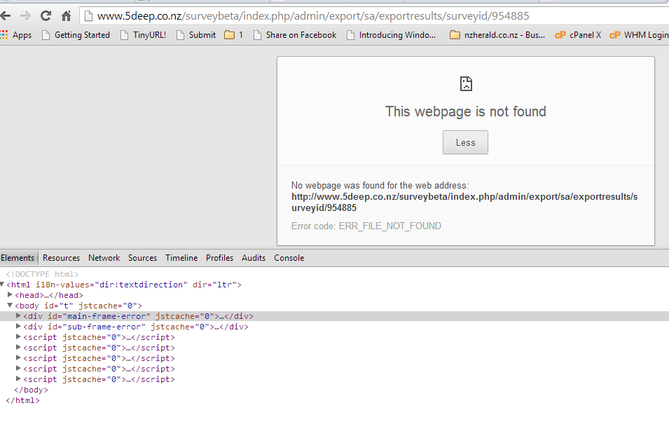 | Description | When you go to export results of a survey I get this message No webpage found | ||||