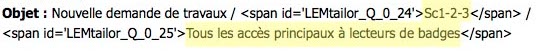 | Description | lime Version 2.00+ Build 131022 when using email notification to send a feedback to the user with "TO" = content of an email question within the survey, I have a strange behaviour in the "object" (subject) of the mail - see snapshots sometimes, the object is OK, sometimes, a <span ID="LEMtailor...> appears (see snapshots) ??? I suspected the mail client of the receiver, but it is not the case, we made several tests and the problem remains, even on a webmail Grepping in lime soce, I've seen in the file application/helpers/expressions/em_manager_helper.php around line 6480 // If it is an equation, and relevance is true, then write the value from the question to the answer field storing the result | ||||