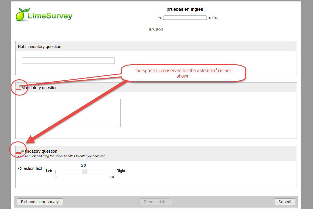 | duplicate of | 09287 | closed | DenisChenu | Missing asterisk in mandatory fields |