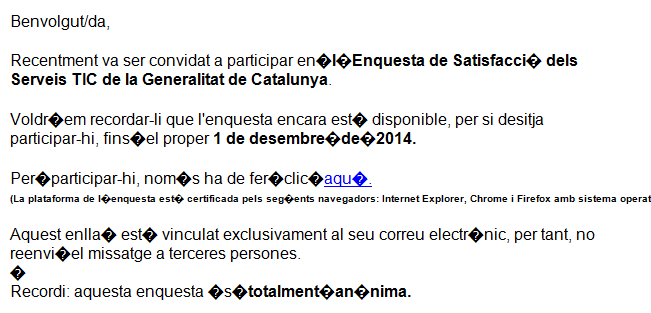 | Description | A very strange problem appear in last version when I'm trying to sent email notification when multiple users. The problem is that in content of email notification appear some strange character '?' (but the token is generated correctly). If I try to sent email notification to one user, it works perfectly. This a crash problem because I can't sent survey to 300 users at the same time... | ||||
