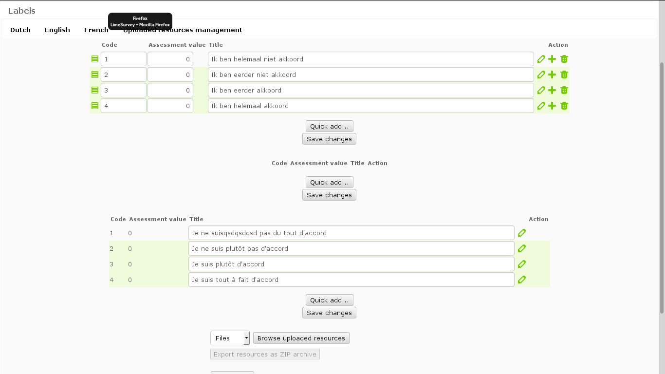 | Description | If you use Save as label set / Replace existing label set to replace a label where there are a language not in survey : this delete language in existing label set if language don't exist in survey | ||||