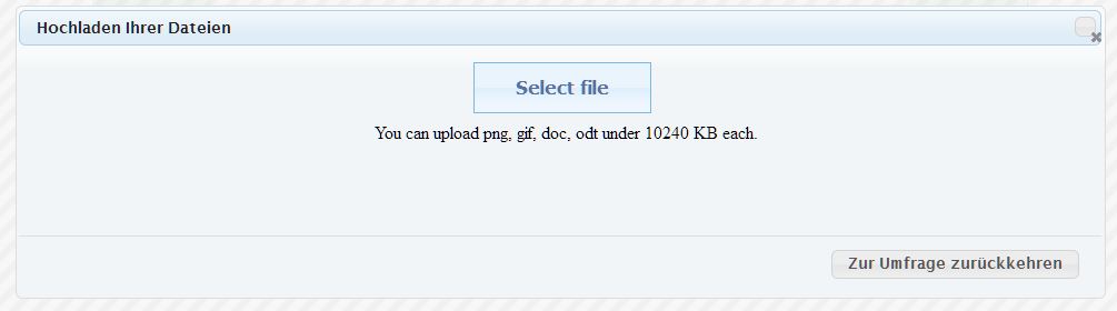 | Steps To Reproduce | Create a file upload question, start survey. On demo-Server: | ||||