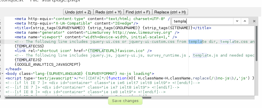 | Description | The 'Find Ctrl+F)' button does not work, nor does using the keyboard shortcut, when trying to find text within a code field of the Template Editor. Browser Find works fine. Tested in Chrome, Firefox and IE, issue apparent on all 3 browsers. | ||||